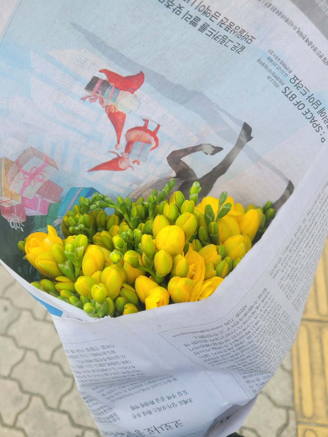 프리지아...연한 초록색의 아기망울부터뽕그랗게 활짝 핀 노란색 봉우리까지사계가 과장됨이 없이담겨있는것 같아서볼때마다 순수함을 느껴봄을 기다리는 가장 큰 이유중에 하나야프리지아향 가득한그런 친구를 또 기다려